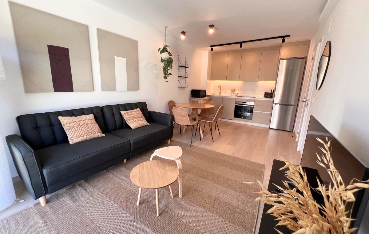 Perfecto para quienes valoran comodidad y conexión con el exterior. Este bajo de 2 dormitorios y 1 baño destaca por su distribución práctica y mobiliario moderno, ofreciendo todo lo necesario para una estancia agradable. La terraza permite disfrutar del aire libre en un espacio acogedor. La urbanización complementa la experiencia con zonas ajardinadas, piscina de temporada y plaza de garaje incluida.